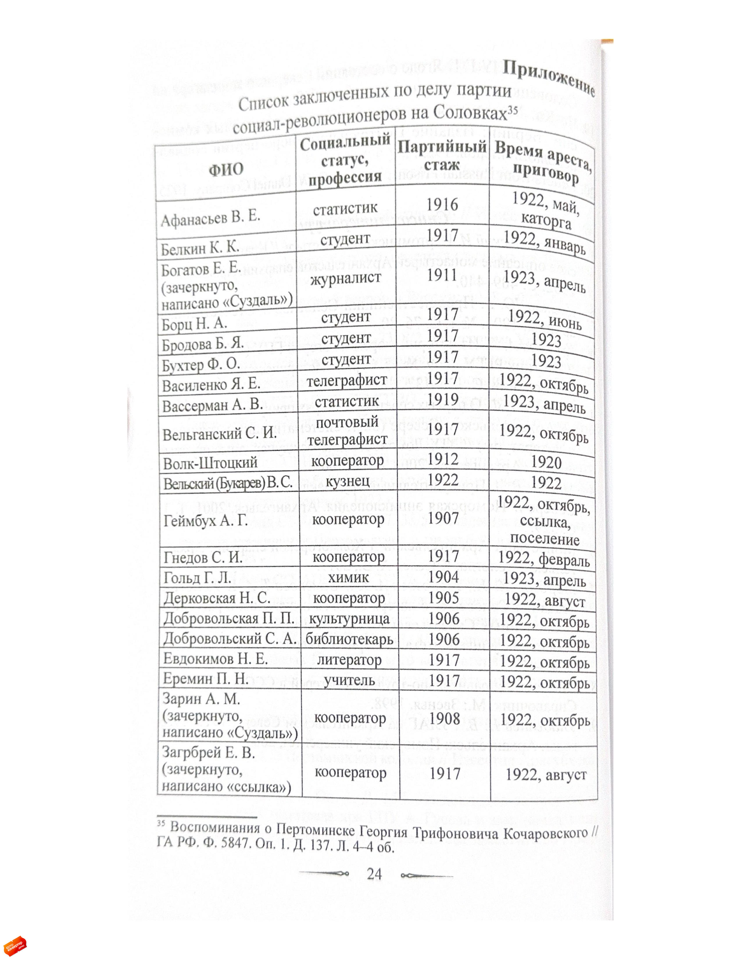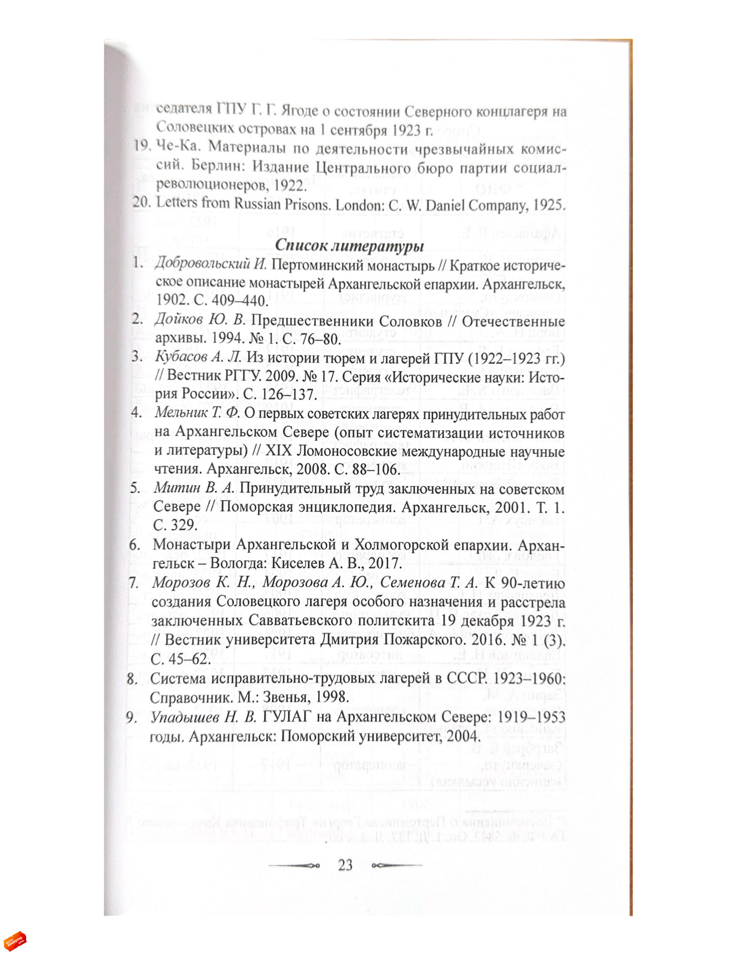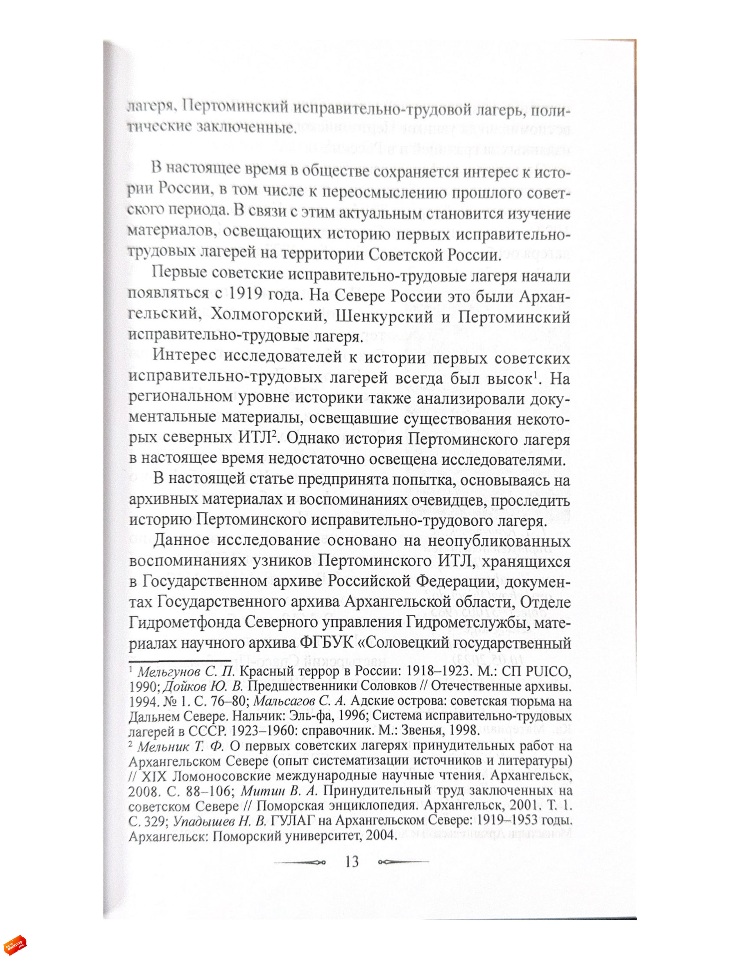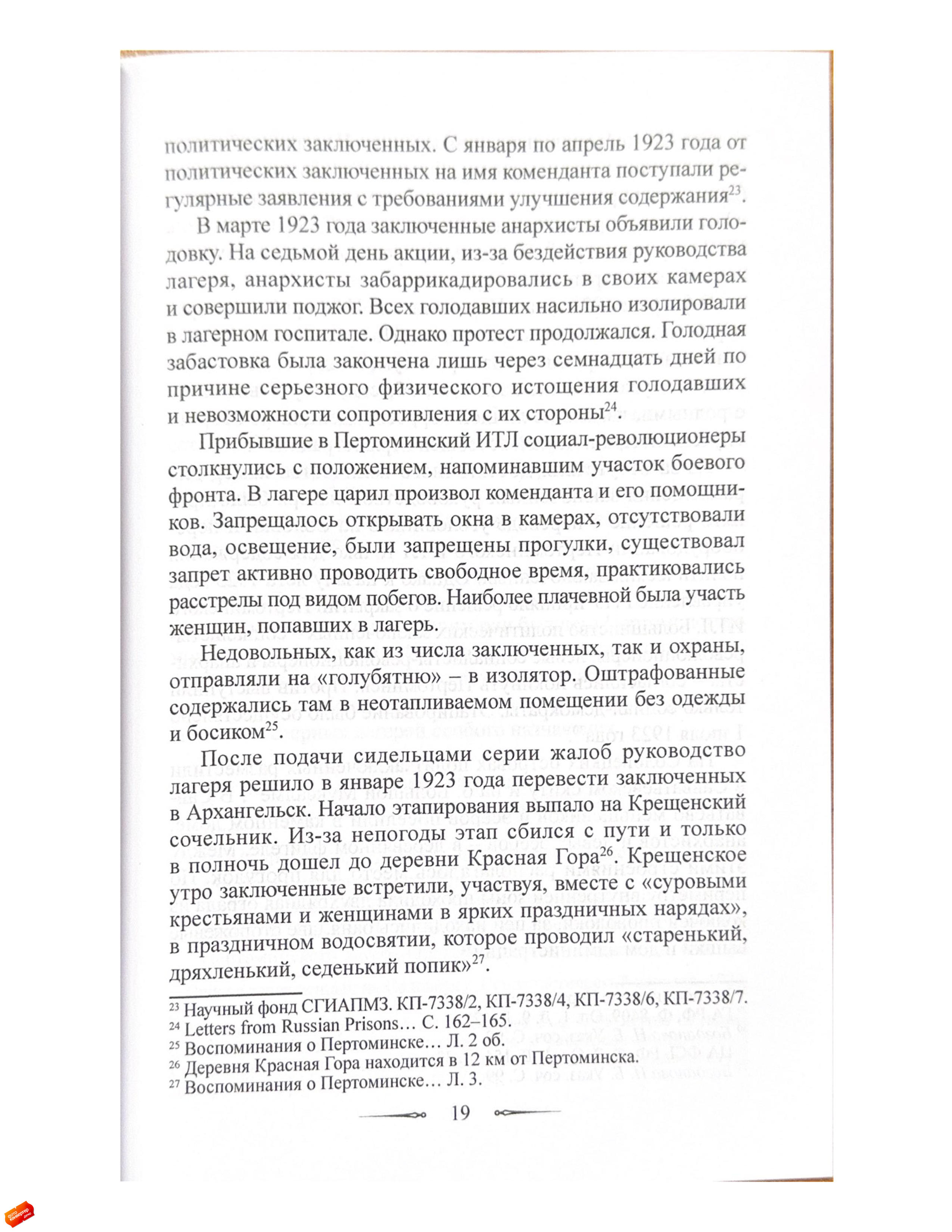 Статья посвящена истории Пертоминского исправительно-трудового лагеря (ИТЛ), существовавшего с 1921 по 1923 год в стенах закрытого Пертоминского Спасо-Преображенского мужского монастыря.Исследование основано на неопубликованных воспоминаниях социал-революционера Георгия Трифоновича Качоровского (1896–1923), написанных им в декабре 1923 года и освещающих условия содержания в Пертоминском ИТЛ, а также отношения заключенных между собой и с руководством лагеря.