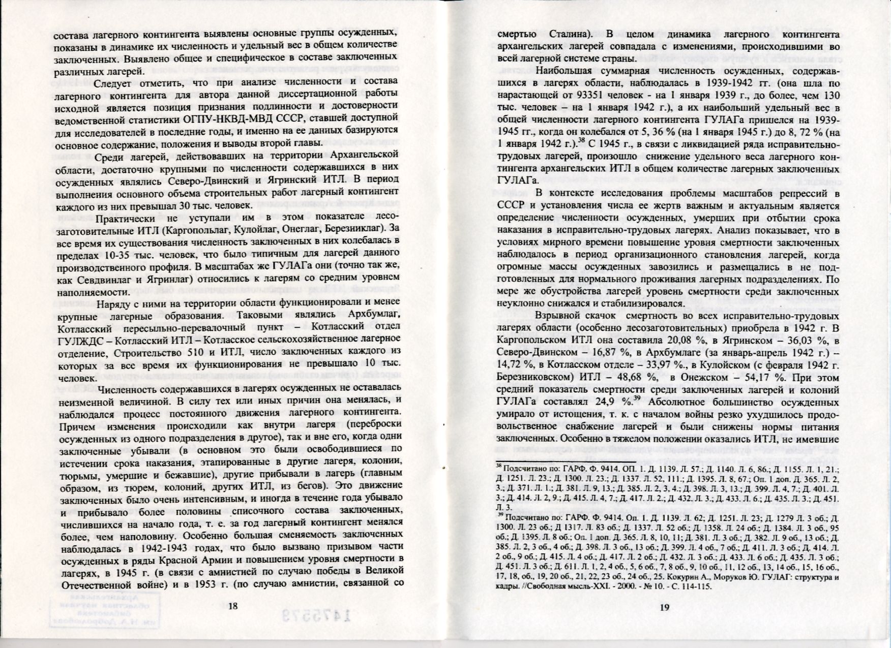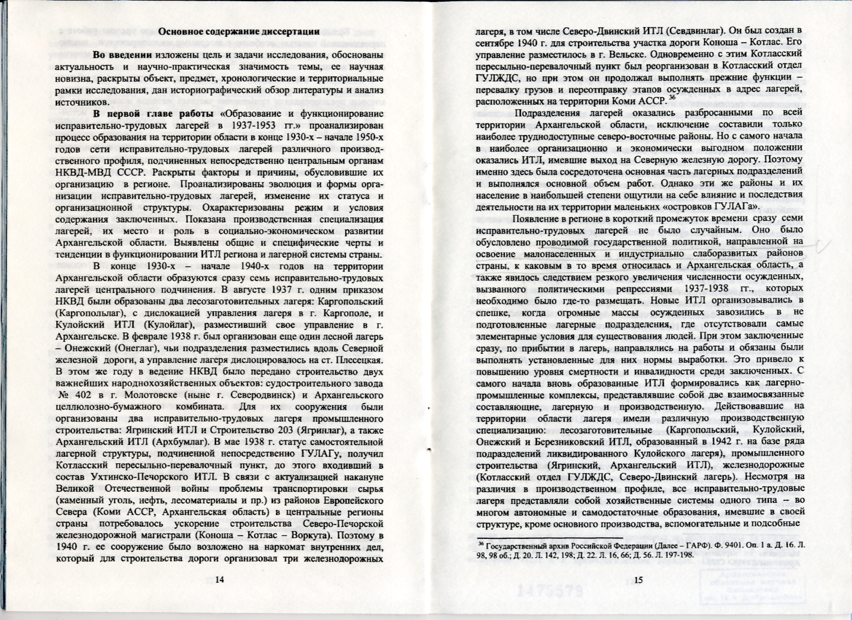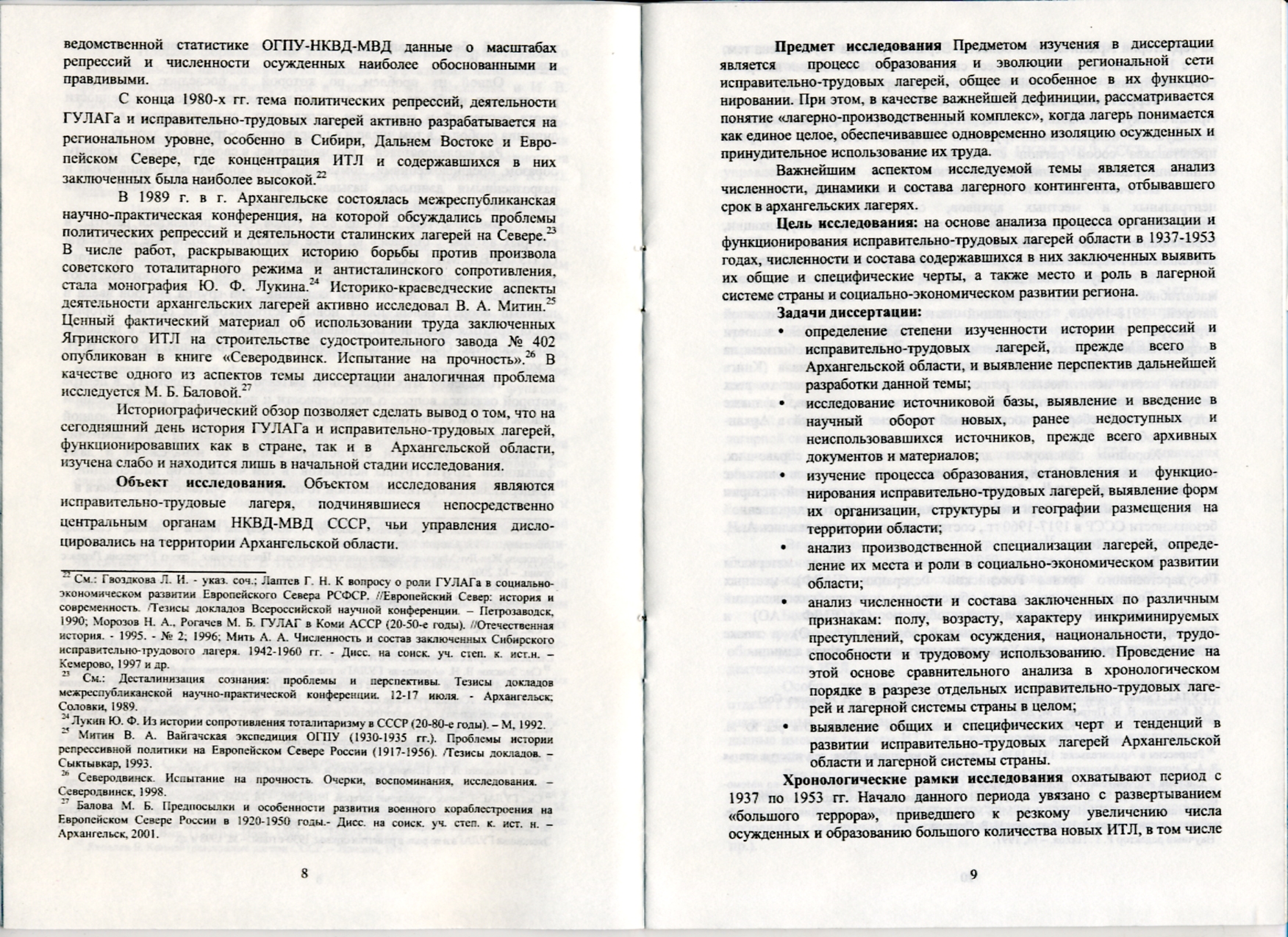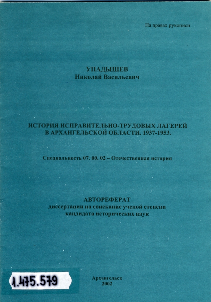 Упадышев Н.В. История исправительно-трудовых лагерей в Архангельской области. 1937--1953 гг. Автореферат диссертации на соискание ученой степени кандидата исторических наук.