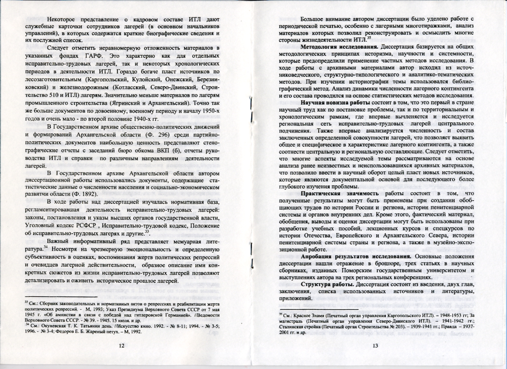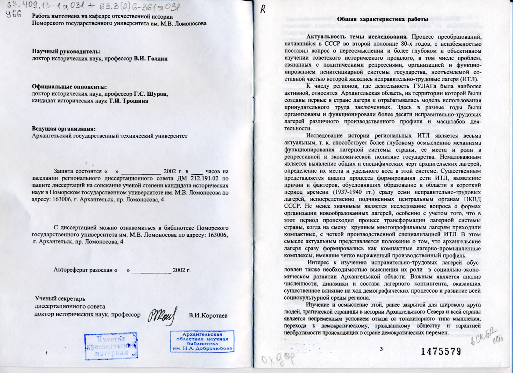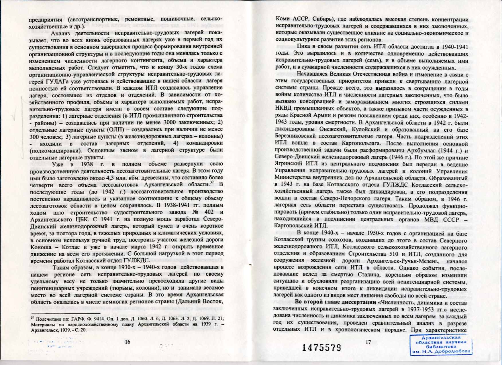 Упадышев Н.В. История исправительно-трудовых лагерей в Архангельской области. 1937--1953 гг. Автореферат диссертации на соискание ученой степени кандидата исторических наук.