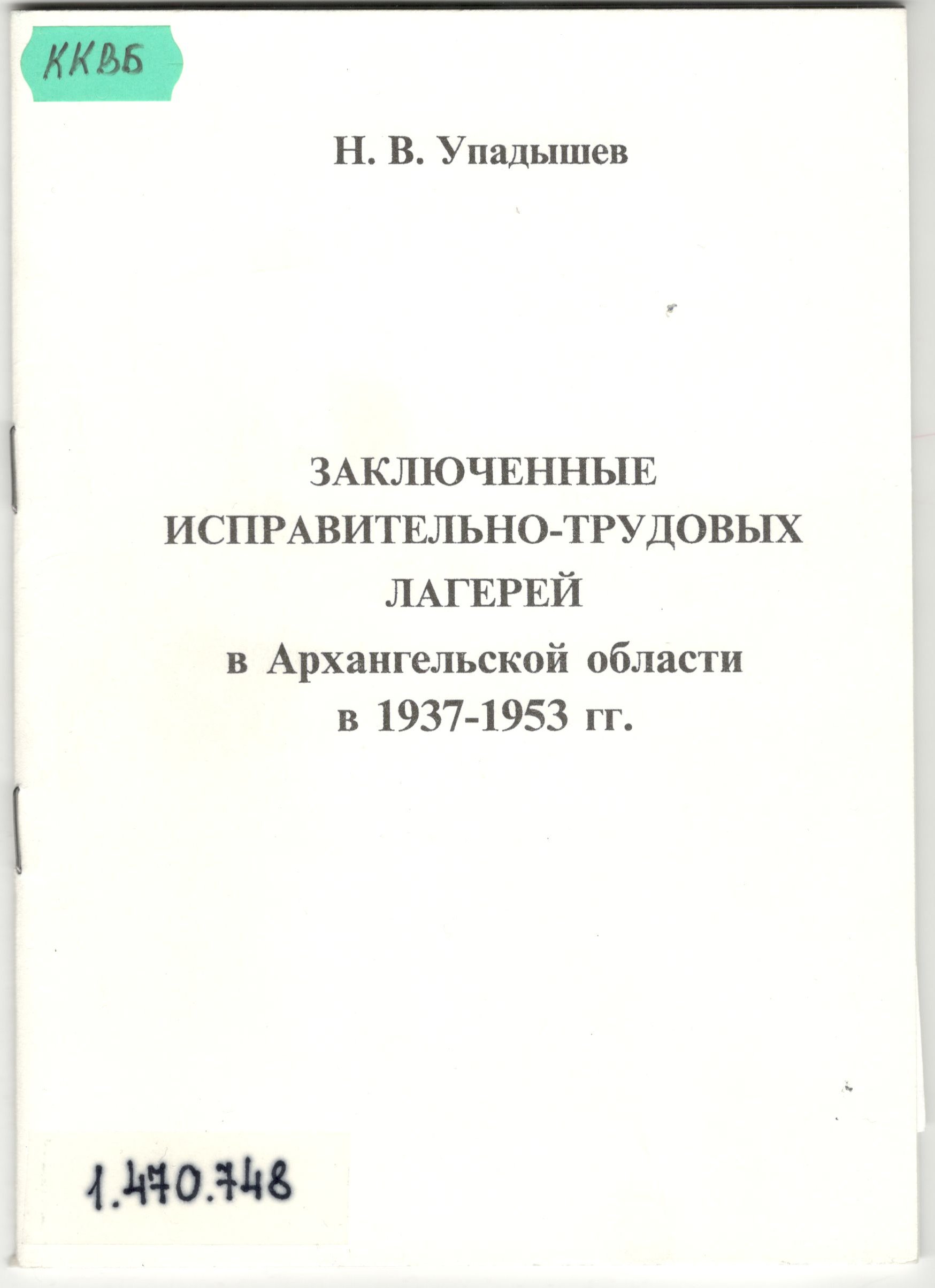 Упадышев В.Н. Заключенные исправительно-трудовых лагерей в Архангельской области в 1937-1953 гг.: численность и динамика. Монография