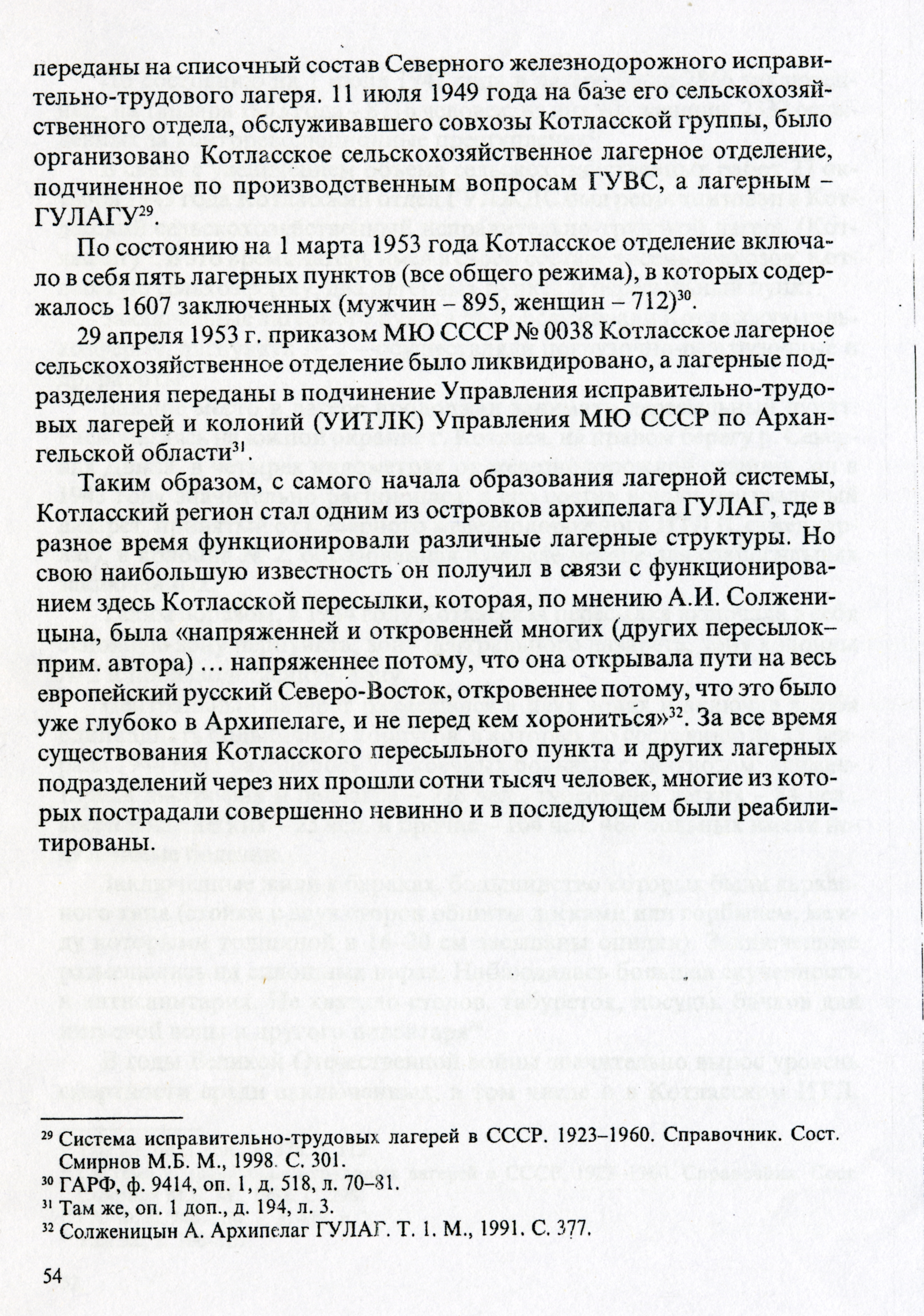 Из истории Сталинских лагерей в Котласе