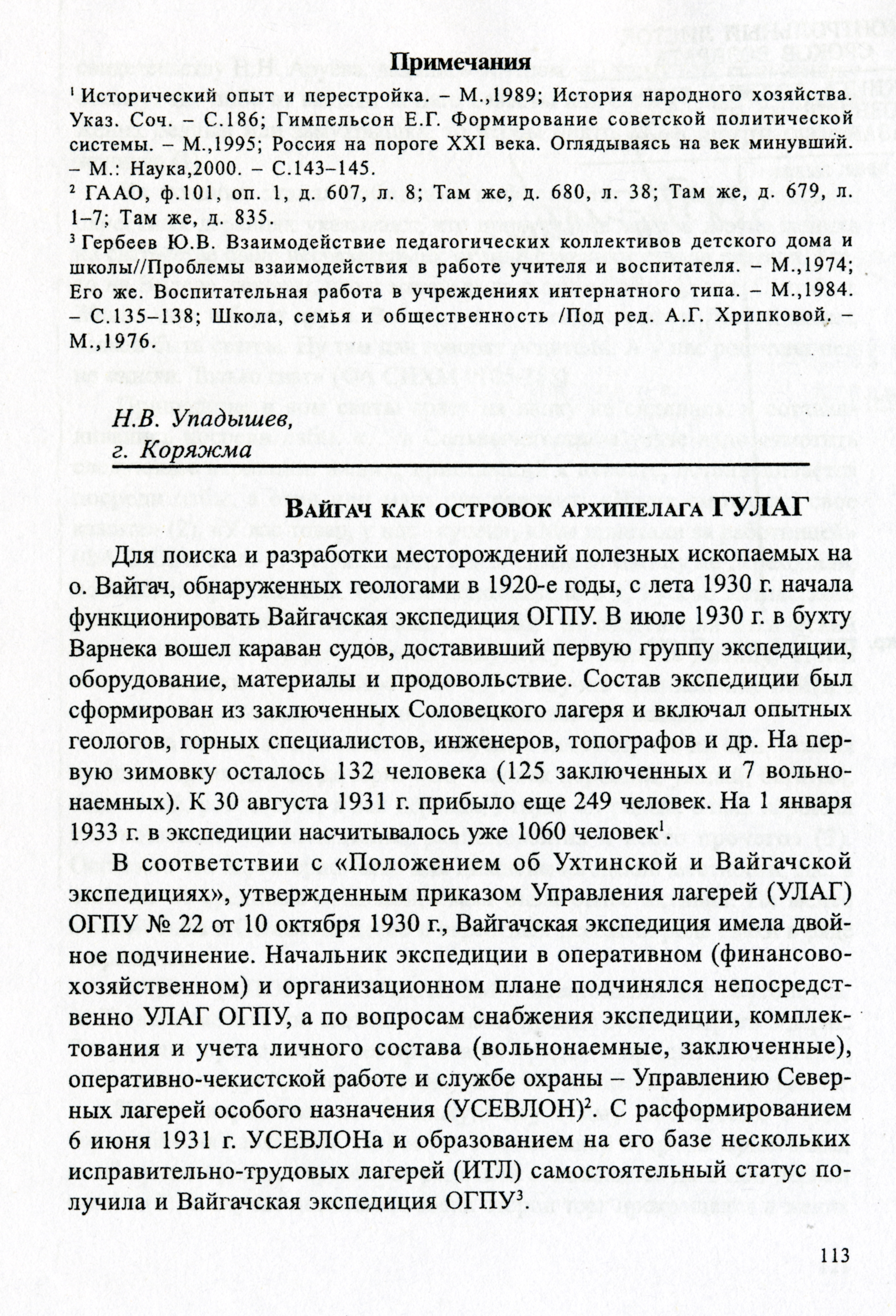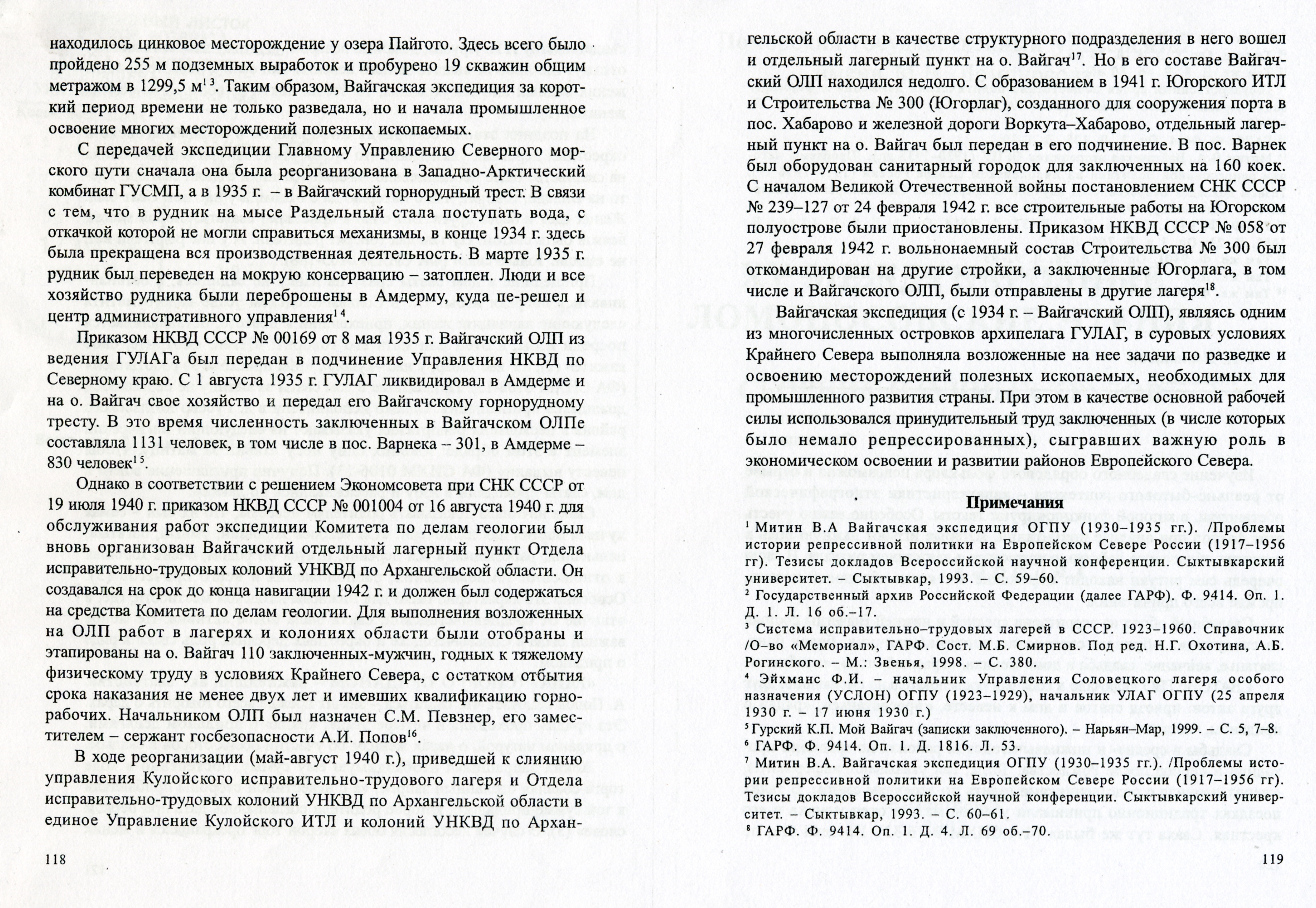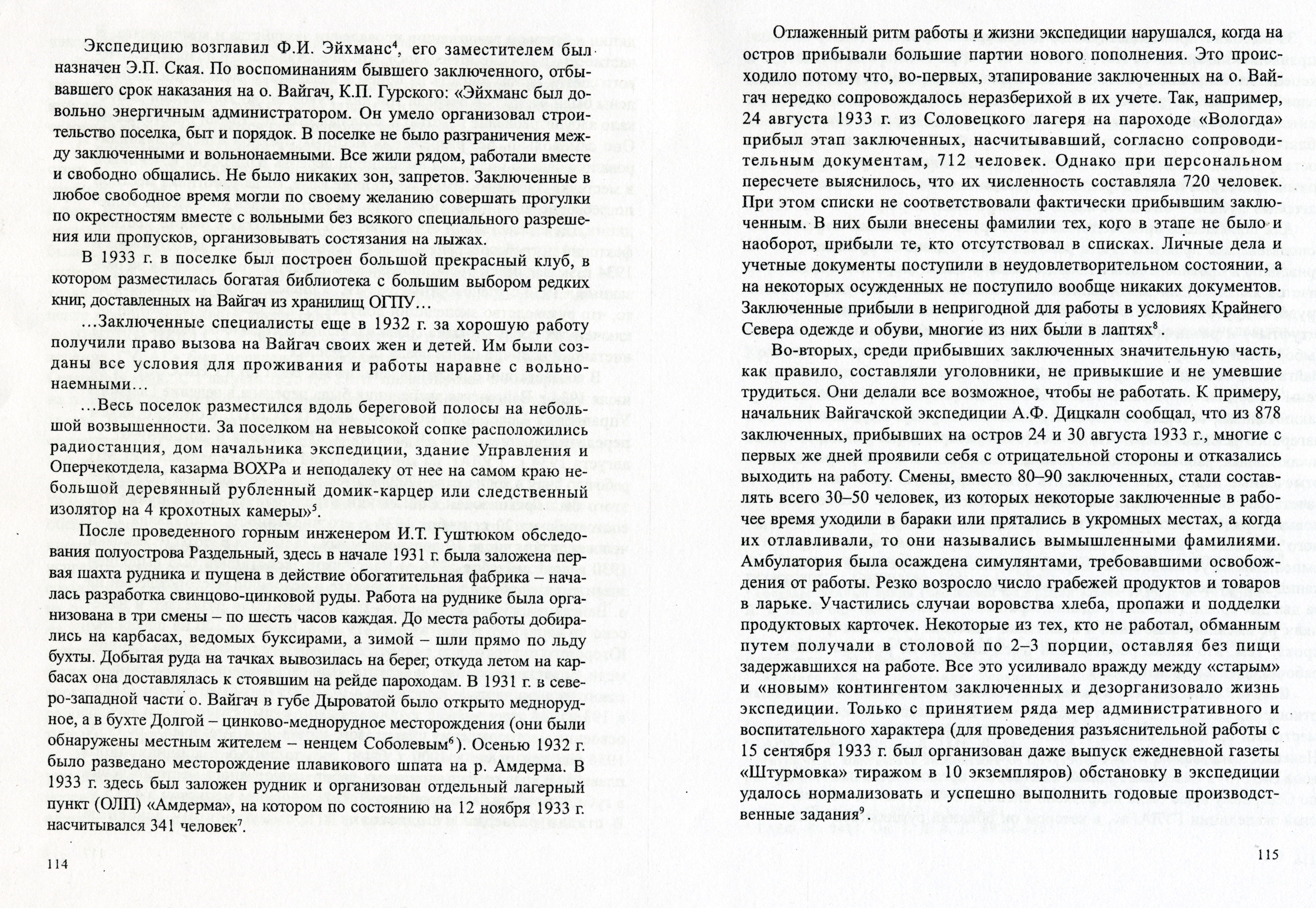 Исследование освещает историю освоения о. Вайгач, использование труда заключенных при добыче полезных ископаемых.
